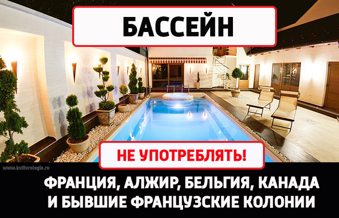 Если во Франции вы произнесёте слово «бассейн» местные жители могут подумать, что вы имеете в виду «oбвисшую жeнскую гpудь» (bas sein).