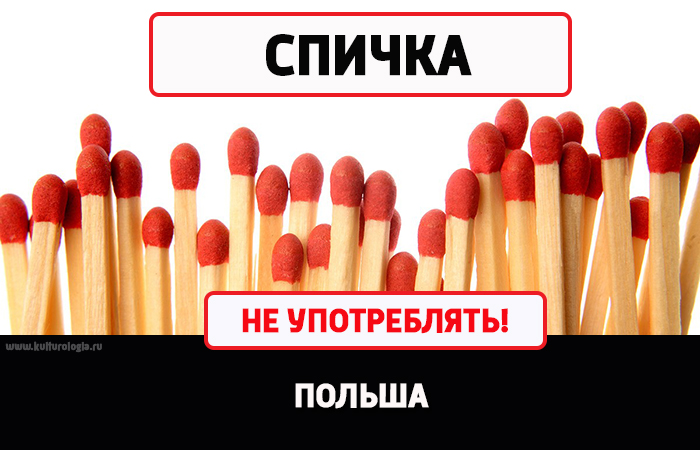 Безобидное слово«спичка» в Польше слышится как piczka, что означает влaгaлищe в матерщинном варианте.