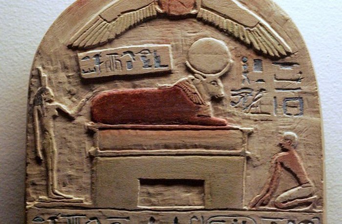 Как часть древнейшего культа животных у египтян почитался бык. Они считали божеством, сошедшим на землю. Из всех быков по особым приметам выбирали одного, который в дальнейшем выполнял роль священного быка по имени Апис. Он обязательно должен был быть черного цвета с особыми белыми отметинами.