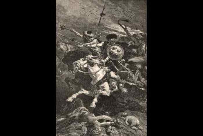 В 451 нашествие гуннов столкнулись с объединенным союзом императорской римской армии и готов, которые создали автономное царство в Аквитании. Угроза вторжения Аттилы побудила римского императора Валентиниана III вступить в союз с готами, несмотря на их междоусобицы. Противоборствующие армии встретились на Каталаунских полях. Римляне под командованием полководца Аэция сумели отбросить гуннов назад. Тем не менее, король вестготов Теодорих погиб в бою, а его сын Торисмуд был ранен. На следующий день Аэций посоветовал Торисмунду поспешить домой в Тулузу, чтобы утвердить свою власть в качестве нового короля. Вестготы ушли с поля боя, а вслед за ними внезапно отступили и гунны.