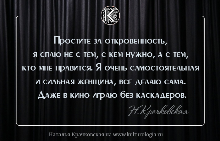 Зрителям Наталья Крачковская полюбилась за роли Ульяны из "Иван Васильевич меняет профессию" и Мадам Грицацуевой из "Двенадцати стульев". А фраза её героини «И тебя вылечат, и меня вылечат» стала крылатой. Крачковская была актрисой нестандартной во всех отношениях и кладезем жизненной мудрости. 3 марта её не стало. Актриса умерла в столичной больнице на 77 году жизни.