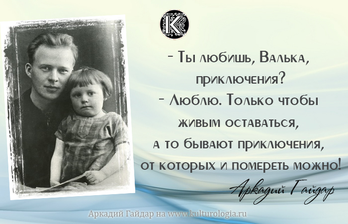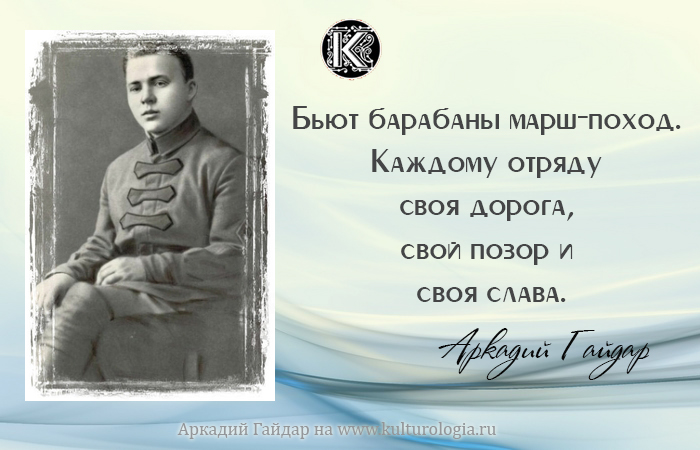 Известный советский писатель Аркадий Петрович Гайдар знаменит не только произведениями для детей, но и своей героической биографией. В 15 лет он убежал из дому, чтобы служить в Красной Армии, в 15 лет командовал взводом, в 16 – ротой, а в 17 стал командиром полка. Когда из-за ранений уволился из армии, начал писать книги, прославляя боевое товарищество, дружбу и честность. Но началась Великая Отечественная, и Гайдар снова ушёл на фронт. 26 октября 1941 года он погиб от фашисткой пули. Сегодня, возможно, «Мальчиш-Кибальчиш» и «Тимур и его команда» покажутся наивными и неактуальными, но это книги, на которых выросло не одно поколение советских детей.
