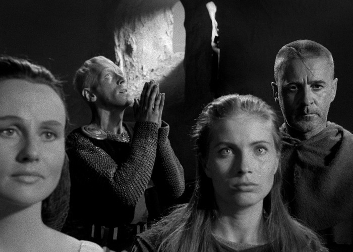 Если у Фауста с Мефистофелем всё серьезно, то у Бергмана встреча рыцаря и Смерти выглядит комично. Нет, образ сыгранный человеком в плаще действительно харизматичный, даже устрашающий. Но обстоятельства и, главное, поведение героя не заставляют брови нахмуриться. Он как светлый ангел с мечом очутился на Земле, вот только кого от кого защищать он пока что не знает. Богоборческая миссия его закончилась ничем, обетованный Рай он так и не увидел.