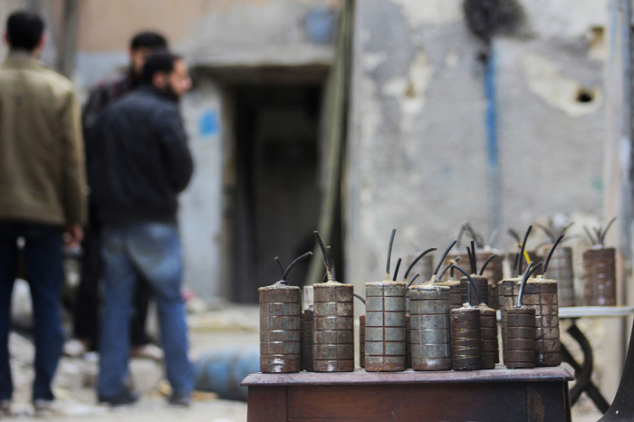 Самодельные гранаты, изготовленные боевиками Свободной Сирийской армии. Пригород Дамаска, район Джобар, 22 февраля 2014 года.