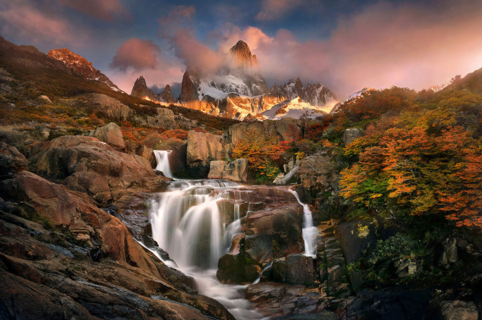 Вершина в Патагонии, Южная Америка, расположенная на границе Аргентины и Чили. Высота 3128 метра.