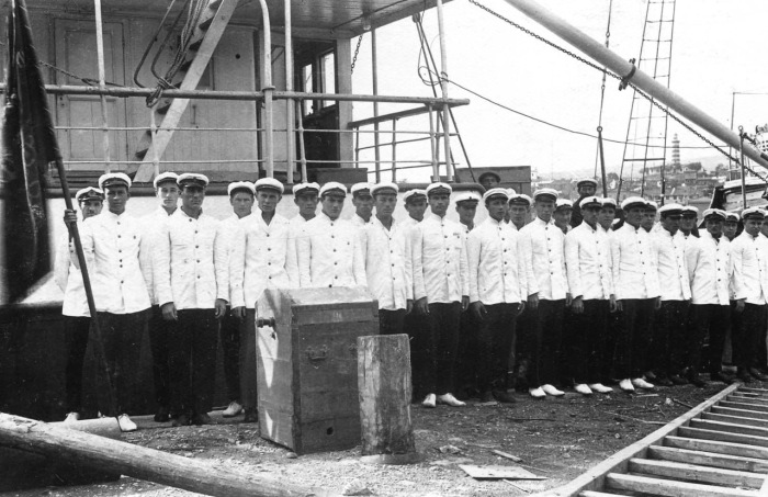 Механники во время плавания на рабочем учебном судне «Яков Зевин» Каспийского пароходства, май 1929 года.