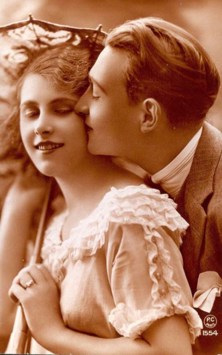 В суете будней XXI века люди порой не успевают проявлять те нежные и тёплые чувства, которых так ждут их близкие и любимые. То ли дело начало прошлого века, когда романтизм и чувственность были выведены чуть ли не на первый план. Ах, какие романтические и нежные поцелуи запечатлены на этих колоризированных открытках из 1920-х.