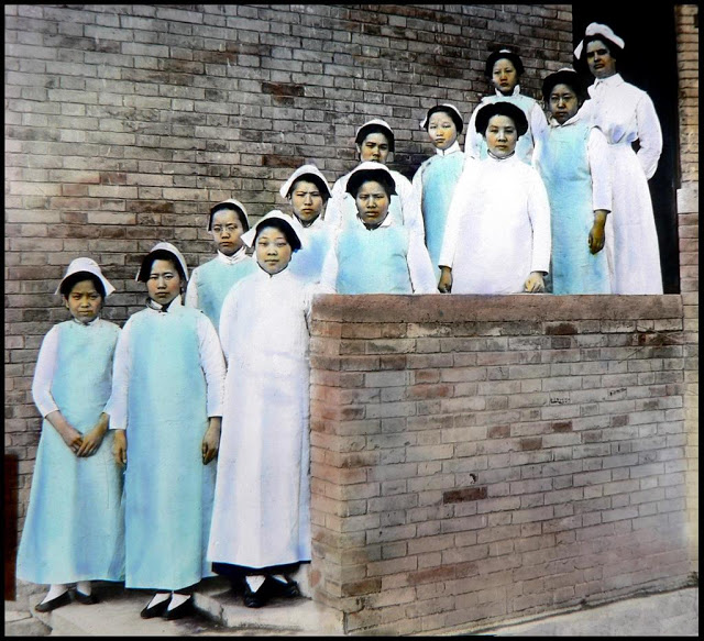 12. Медсестры, называемые ангелами милосердия, на крыльце