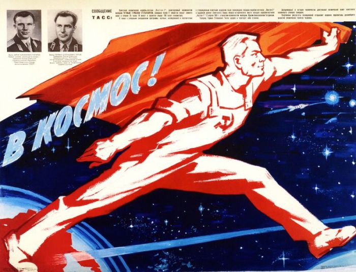 Советская программа по освоению космоса была одной из самых крупных в мире, благодаря чего первым в космосе побывал именно советский человек. Но кроме научных разработок и финансирования, особое внимание в СССР уделялось пропаганде. В нашем обзоре подборка советских плакатов о космосе и его покорителях.