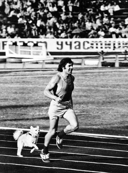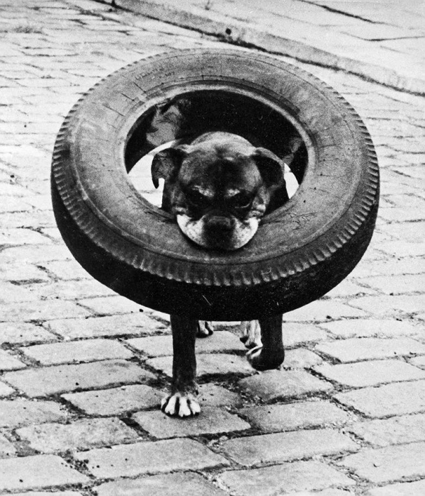 Первомайская демонстрация в сопровождении военно-духового оркестра и собаки, подвывающей в такт.