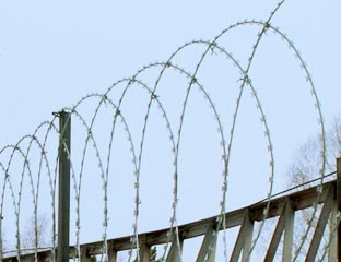 и из завальцованной армированной колючей ленты (колючая лента завальцована на армирующую проволоку)-