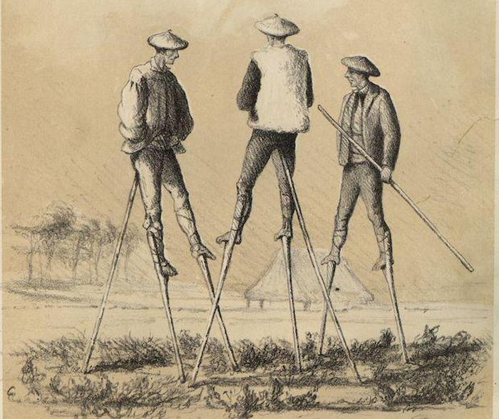 Во Франции в 19 веке стали необычайно популярны ходули. Некоторые представители общества, нашили этот атрибут гардероба «забавным» в результате чего высокие ходули стали широко применяться на общественных и культурных мероприятиях. Началось же все с фермеров и пастухов, что использовали ходули для преодоления болотистой местности.