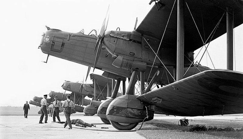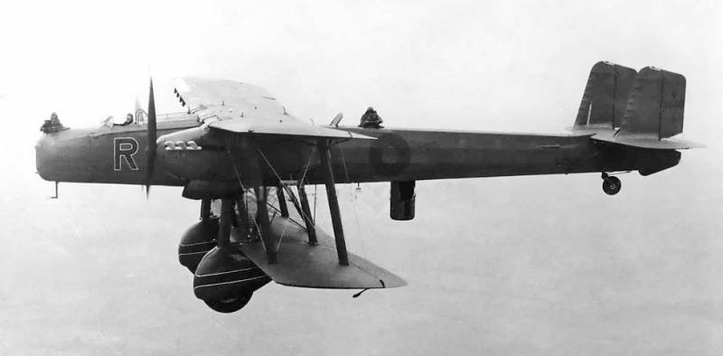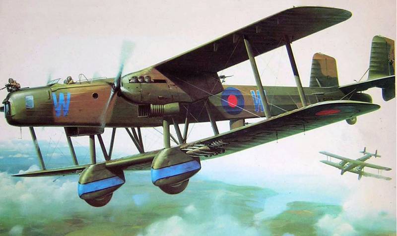 Помимо рекорда Блерио, 12 июня произошло еще одно любопытное авиационное событие. В Англии в тот день 1930 года впервые поднялся в воздух бомбардировщик Хэндли-Пэйдж “Хейфорд” – один из самых оригинальных самолетов эпохи дизельпанка. Как видно на рисунке, в отличие от подавляющего большинства других бипланов, фюзеляж и мотогондолы у него крепились не к нижнему, а к верхнему крылу.