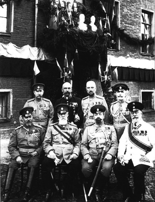 Группа офицеров лейб-гвардии Егерского полка в день празднования 100-летия Кульмской битвы. Россия, 1913 год.