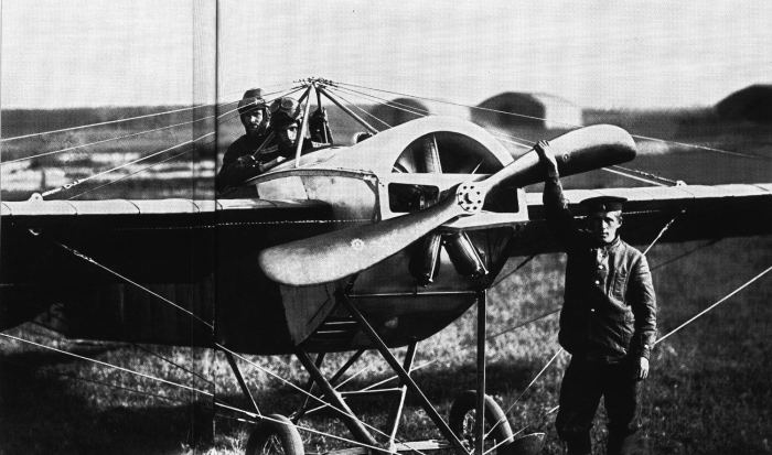 Самолет перед вылетом на аэродроме Гатчинской авиашколы. Россия, 1913 год.