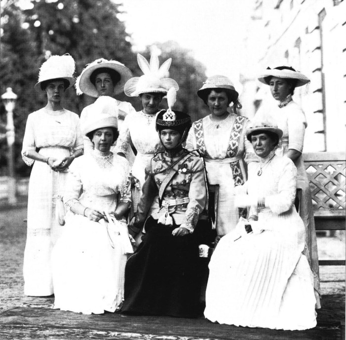 Великая княжна Ольга Николаевна с женами офицеров полка. Россия, 1913 год.
