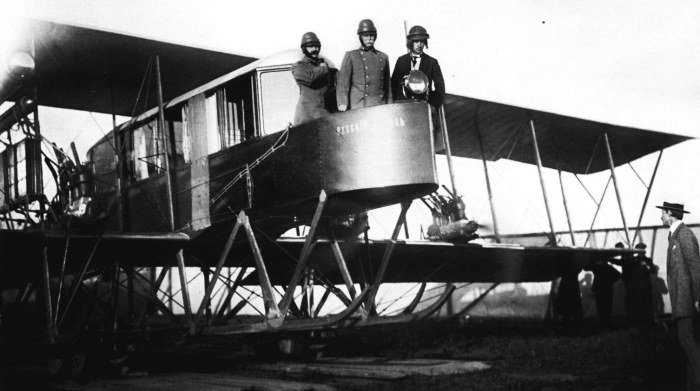 Первый в мире многомоторный аэроплан Русский витязь на конкурсе военных аэропланов. Россия, 1913 год.