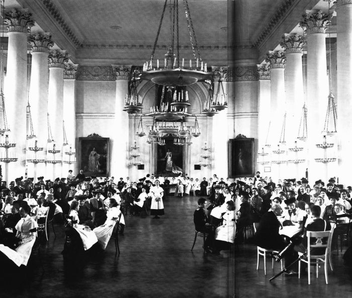 Приемный зал Смольного института. Россия, 1913 год.