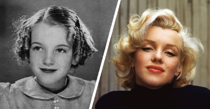 Мэрилин Монро на одной из своих первых фотосессий в 1935 году и спустя годы.
