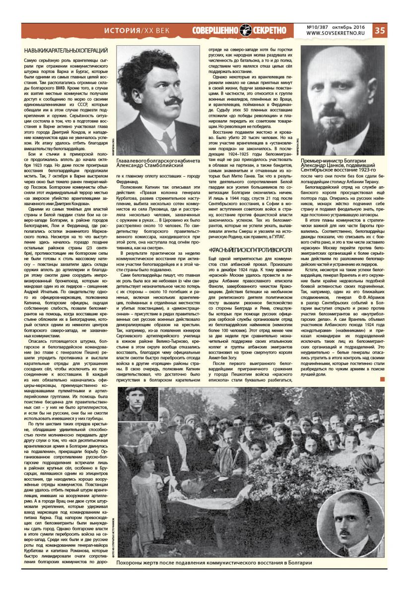 В сентябре исполнилась очередная дата подавления коммунистического восстания в Болгарии в 1923 году – событие, ставшее одним из самых кровавых в межвоенный период в Европе, в результате которого погибли свыше 20 тысяч человек. Долгие годы историки умалчивали об одной пикантной подробности Сентябрьского восстания 1923-го года: важнейшую роль в его подавлении сыграли русские белогвардейцы.