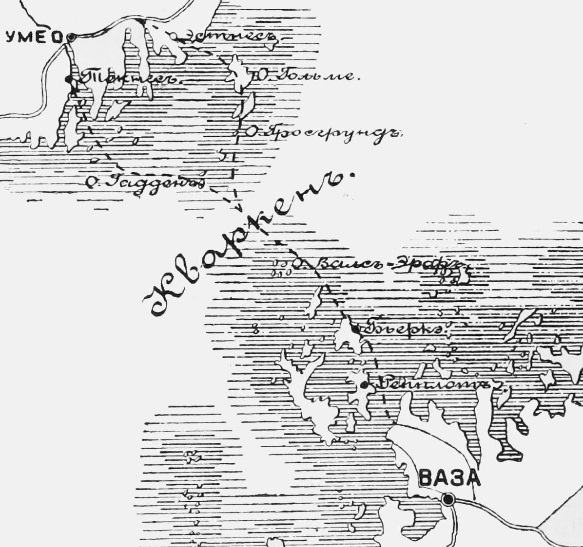 Фаддей Булгарин свидетельствует: «Ботнический залив, начинающийся у города Торнео, расширяясь постепенно в обе стороны при своем начале, суживается между финляндским городом Васа и шведским Умео и образует род пролива шириной около 100 верст, называемого Кваркен. Между обоими берегами находятся группы островов; большая часть их состоит из голых необитаемых скал.