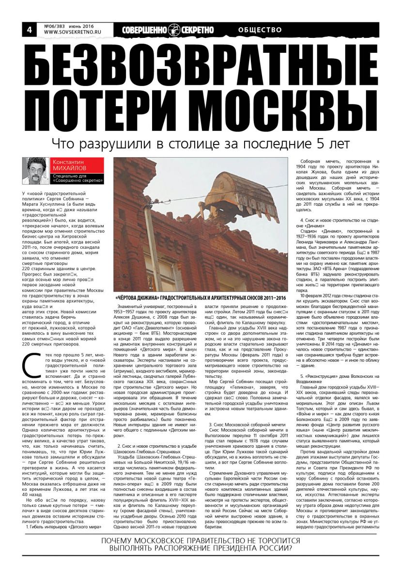 У «новой градостроительной политики» Сергея Собянина – Марата Хуснуллина (а были ведь времена, когда её даже называли «градостроительной революцией») было, как водится, «прекрасное начало», когда волевым порядком мэр отменил строительство бизнес-центра на Хитровской площади. Был апогей, когда весной 2011-го, после очередного скандала со сносом старинного дома, мэрия заявила, что отменяет смертные приговоры 220 старинным зданиям в центре. Прогресс был закреплён, когда осенью мэр лично провёл первое заседание новой комиссии при правительстве Москвы по градостроительству в зонах охраны памятников архитектуры, куда вошёл и автор этих строк. Новой комиссии ставилась задача беречь исторический город, в отличие от прежней, лужковской, которой вменялось в вину вынесение тех самых отменённых новой мэрией 220 смертных приговоров.