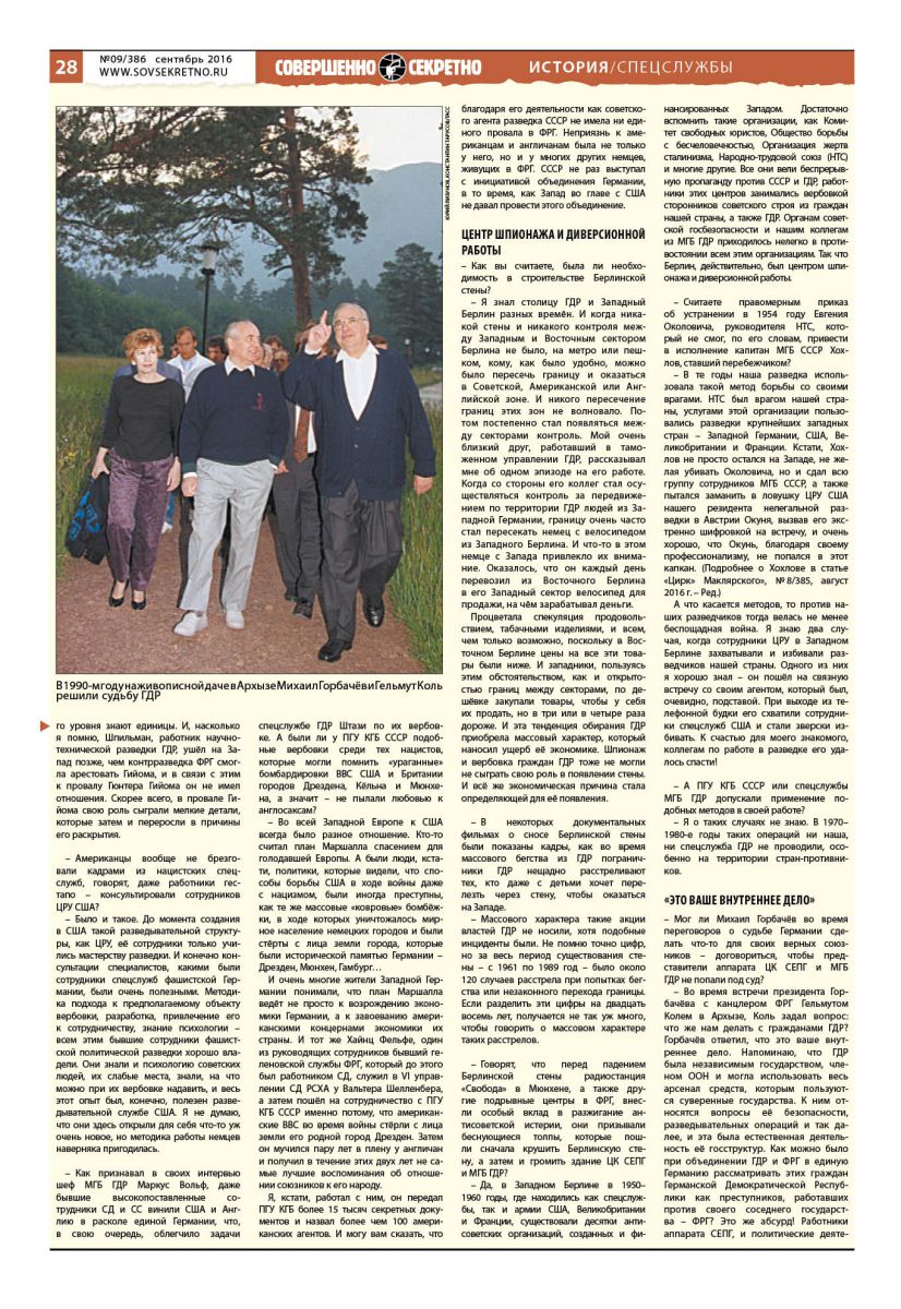 – Я о таких случаях не знаю. В 1970–1980-е годы таких операций ни наша, ни спецслужба ГДР не проводили, особенно на территории стран-противников.