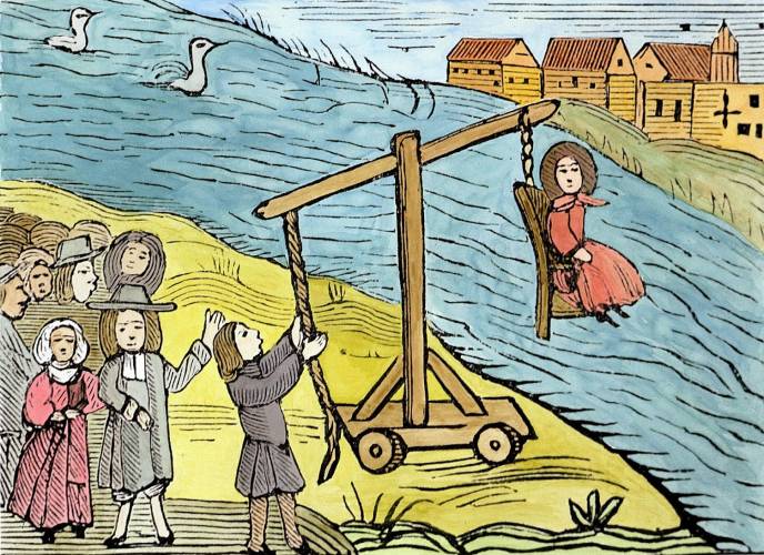 А вот ещё одно распространённое проявление суда Божьего. В народе ходило поверье, что если к убитому подвести убийцу или дать к нему прикоснуться, то из ран выступит кровь. Дактилоскопия, группа крови и другие привычные нам современные криминалистические тонкости просто отдыхают. Правда, эти методики были распространены только при выявлении вины несвободных людей, за которых не хотели присягать их господа. Свободным людям было чуть полегче, им предоставлялось право судебного поединка или присяги. Особенно «эффективен» оказался суд Божий, когда стали устраивать процессы против ведьм. Вот на этих бедных созданиях организаторы таких судов проявляли себя в полную силу.