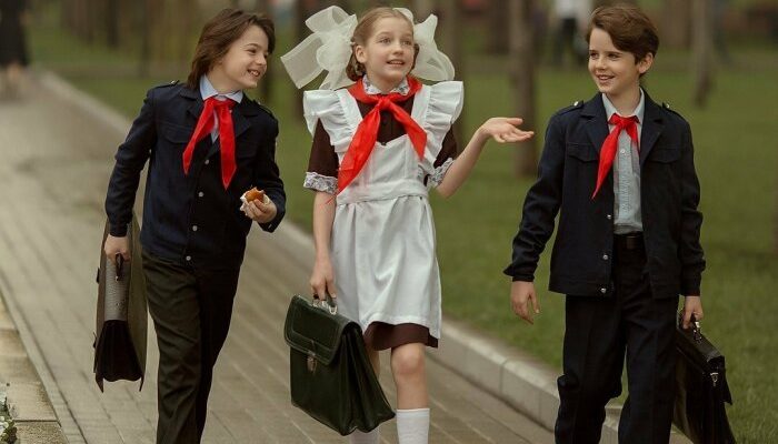 Школьная форма в СССР была достаточно строгой. Мальчики надевали темно-синие костюмы, выполненные в военном стиле и белую рубашечку. До начала шестидесятых