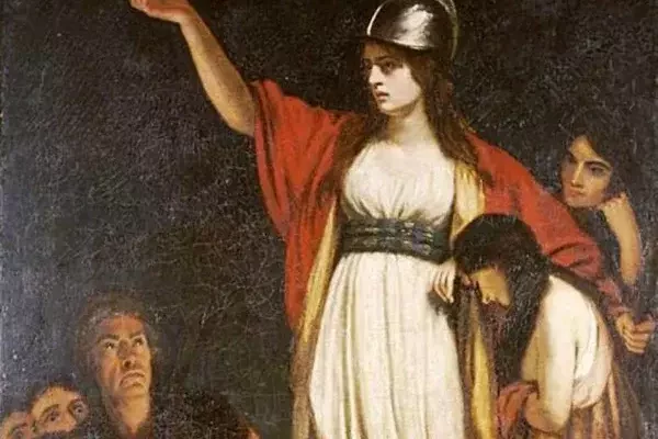 Боудика призывает бриттов защищать свою страну от римских захватчиков. Гравюра Уильяма Шарпа. Национальная портретная галерея, Лондон «Боудика стала иконой