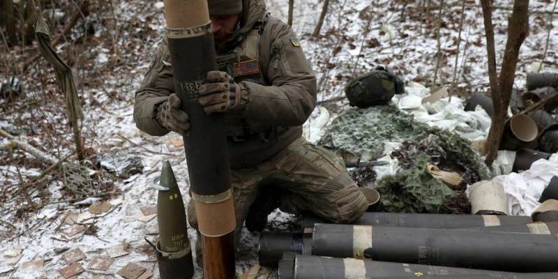 Артиллерист вооруженных сил Украины подготавливает к стрельбе американские 105-мм выстрелы для буксируемой гаубицы М119 На Украине была проведена насильственная