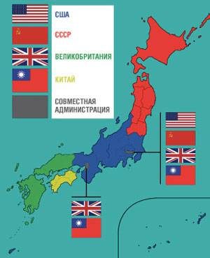 В 1945 году союзные державы приняли решение об оккупации Японии. Был разработан план ее раздела между странами-победительницами по образу Германии.