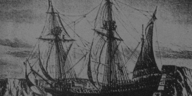 Корабль «Эдуард Бонавентура» огибает мыс Нордкап. С акварели Марка Майерса 24 августа 1553 года размеренность жизни жителей деревни Нёнокса в Двинском