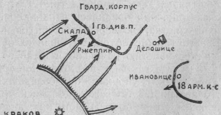 В ходе Краковской операции 1-го ноября 1914 года крупные силы австрийских войск, сосредоточенные в районе крепости Краков, обрушились на части 1-й Донской