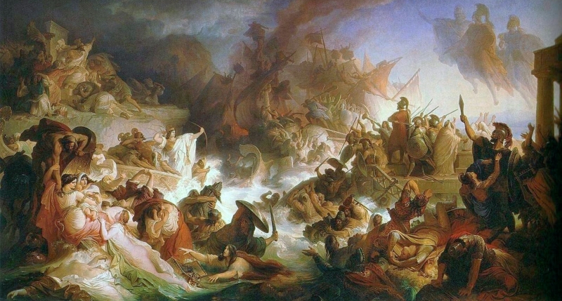 Так, примерно в 483 году Фемистокл остаётся вне конкуренции и самозабвенно строит флот. А через два года становится известно, что персы идут на Грецию и греки создают союз во главе с Афинами и Спартой. События показывают, что Фемистокл был прав. На суше персам противостоять практически невозможно: несмотря на героизм царя Леонида и его трёхсот спартанцев в Фермопильском ущелье, войска Ксеркса стремительно идут вглубь страны. А тем временем афинский флот треплет персов при Артемисии и в полном порядке отходит к родным проливам. Фемистокл всеми правдами и неправдами пробивает свой план ведения войны. Он использует хитрость, подкуп, убеждение, выгодное для себя толкование пророчеств и знамений, ложные манёвры и дезинформацию. В результате, когда армия Ксеркса была готова с лёгкостью победить на суше и захватить все земли греческого союза, Фемистокл громит персидский флот при острове Саламин и тем добивается стратегического преимущества, а потом полной победы.