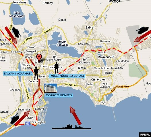 Четверть века назад советское руководство попыталось закрепить свое присутствие в Азербайджане силой. В результате действий армии более 200 человек погибли, тысячи были арестованы, телестанции взорваны. Но репрессии лишь укрепили стремление к независимости, и уже на следующий год Азербайджан стал суверенным государством.