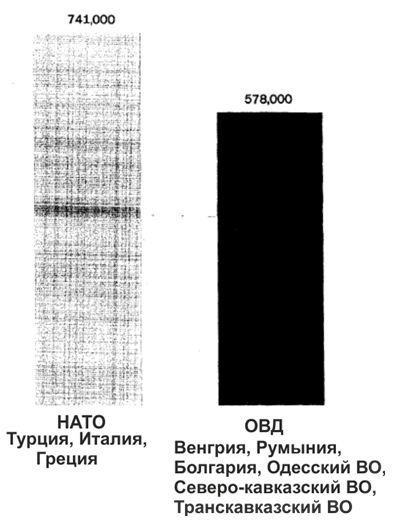 (с) ОВД имеет примерно вдвое больше дивизий, чем НАТО, хотя большинство дивизий НАТО крупнее.