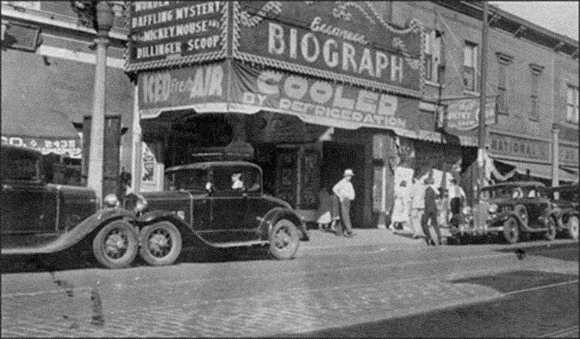 Вечером Джон Диллинджер решил идти в Биограф, где показывали гангстерскую картину Манхэттенская мелодрама с Кларком Гейблом в главной роли. Анне Сейдж удалось выбраться из дома в магазин под предлогом, что не на чем жарить курицу. Во время похода в магазин за маслом она позвонила в ФБР и уточнила название кинотеатра, в который они пойдут в воскресенье вечером.