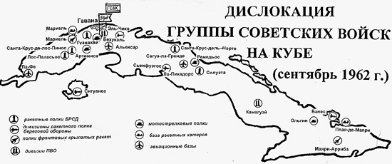Схема размещения советского воинского контингента на Кубе в дни Карибского кризиса. Фото с сайта http://old.redstar.ru