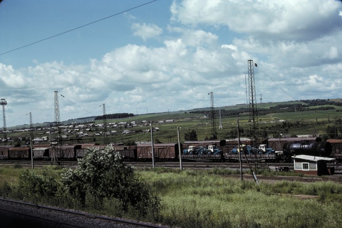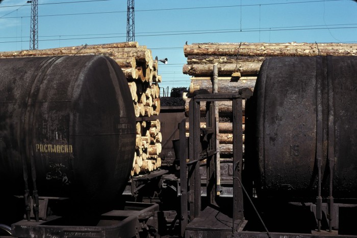 Платформы с древесиной, углем и цистерны с маслом в Мариинске.