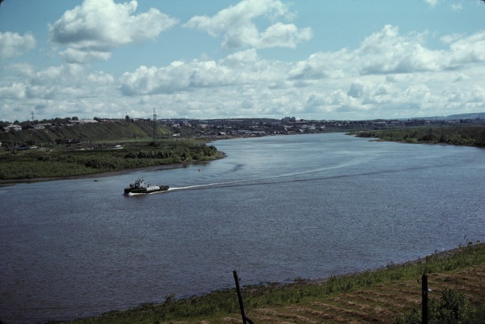 Пароход на реке Чулым, правый приток Оби в Ачинске.