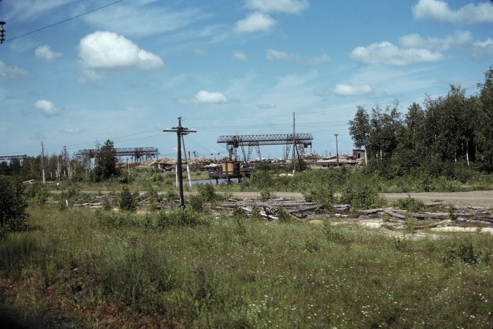 Место хранения вырубленной древесины на въезде в Мариинск.