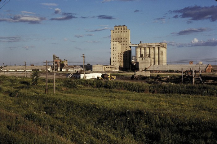 Зернохранилище неподалеку от Барабинской степи в южной части Западной Сибири.