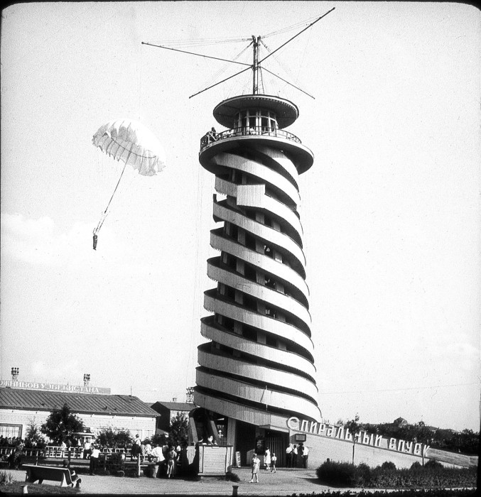Спиральный спуск в центральном парке культуры и отдыха имени Горького в Москве. СССР, 1937 год.