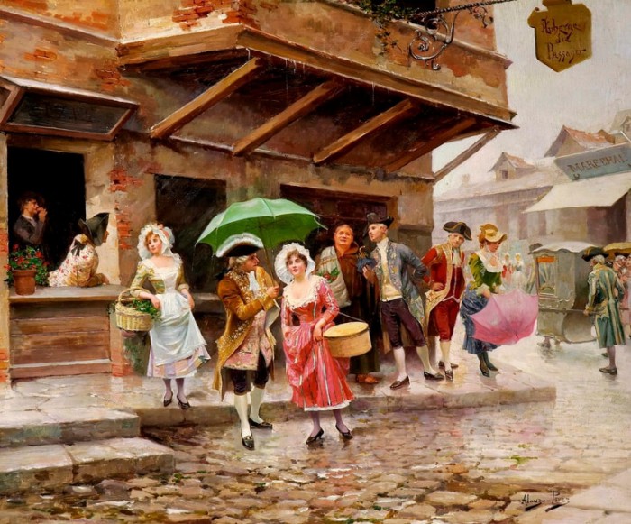 Возможно, картины испанского художника Мариано Алонсо Переса (Mariano Alonso Perez) далеки от совершенства и идеала, но они очень тонко показывают ушедшую эпоху XVII-XVIII веков, её красоту и обаяние, когда в моде были галантные кавалеры, облачённые в роскошные камзолы и кокетливые дамы в пышных платьях и кружевных чепцах…