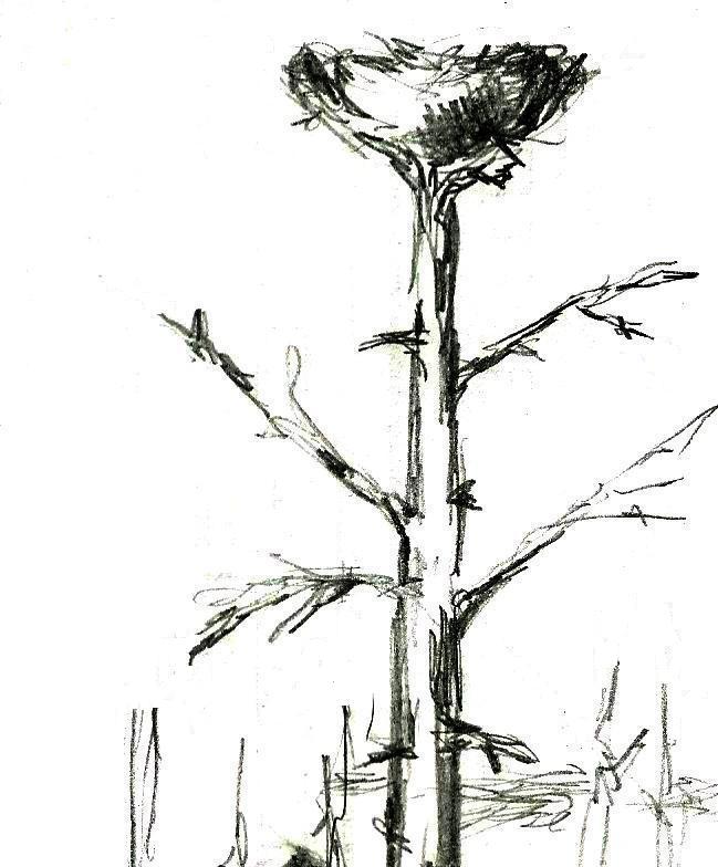 Это "неправильное" представляло собой пустое птичье гнездо на вершине высокой старой сосны метрах в двухстах к западу от машины. Обыкновенное, или, вернее из-за размеров – необыкновенное птичье гнездо. Роман остановил машину, стали по очереди смотреть в бинокль – гнездо было явно пустое, заброшенное. Любопытство взяло верх, охотники вышли из машины и, утопая по бёдра в снегу, пошли к сосне. Сосна огромная, высокая, необычайно толстая; видно, что древняя и начинает иссыхать; высится над лесом, и на самой вершине – гнездо. С виду – обыкновенное птичье. Но вот размеры!