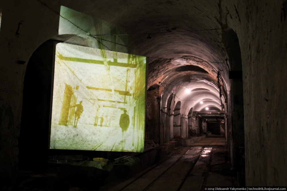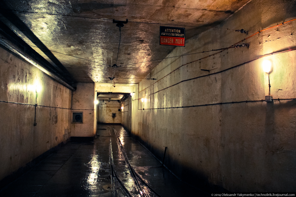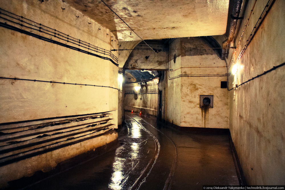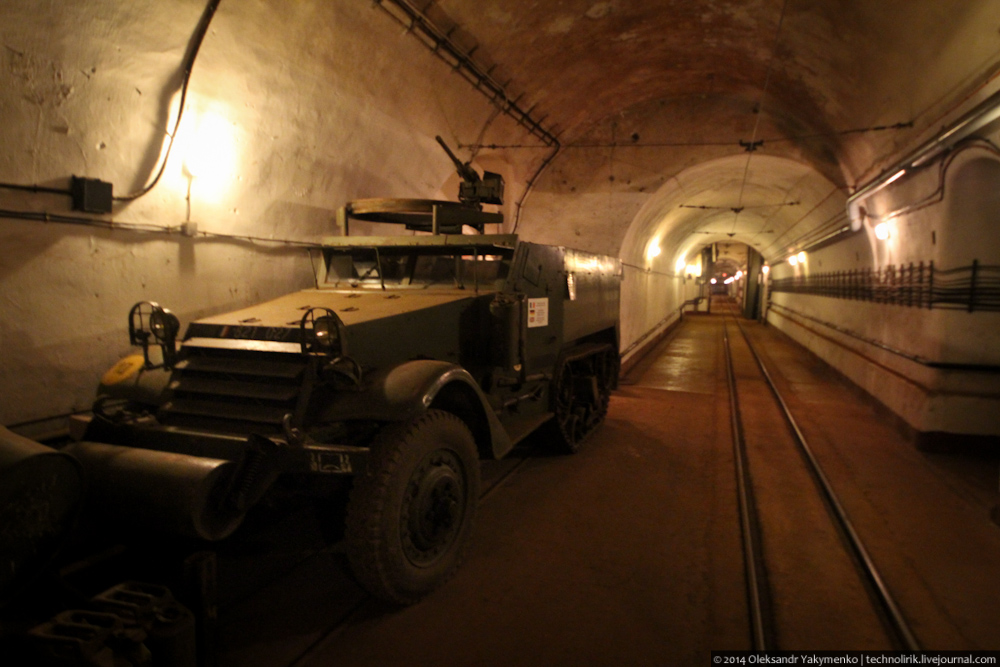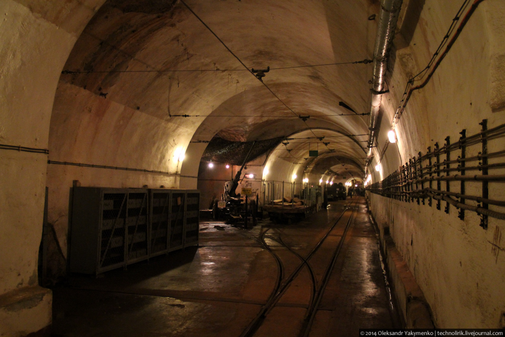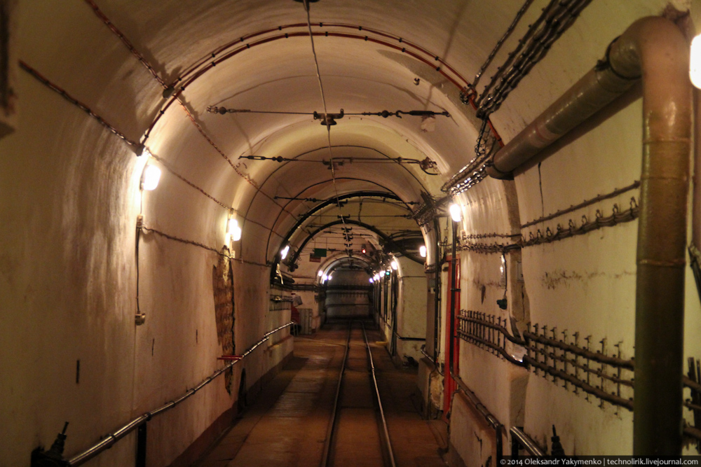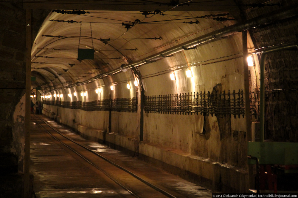 02. Внутрь входного портала для доставки амуниции ведет узкоколейка, по которой грузы доставлялись поездом с поверхности до ближайшего подземного вокзала, где они перегружались на вагонетки внутрифортовой железнодорожной системы и при помощи электрических локомотивов развозились к местам назначения.