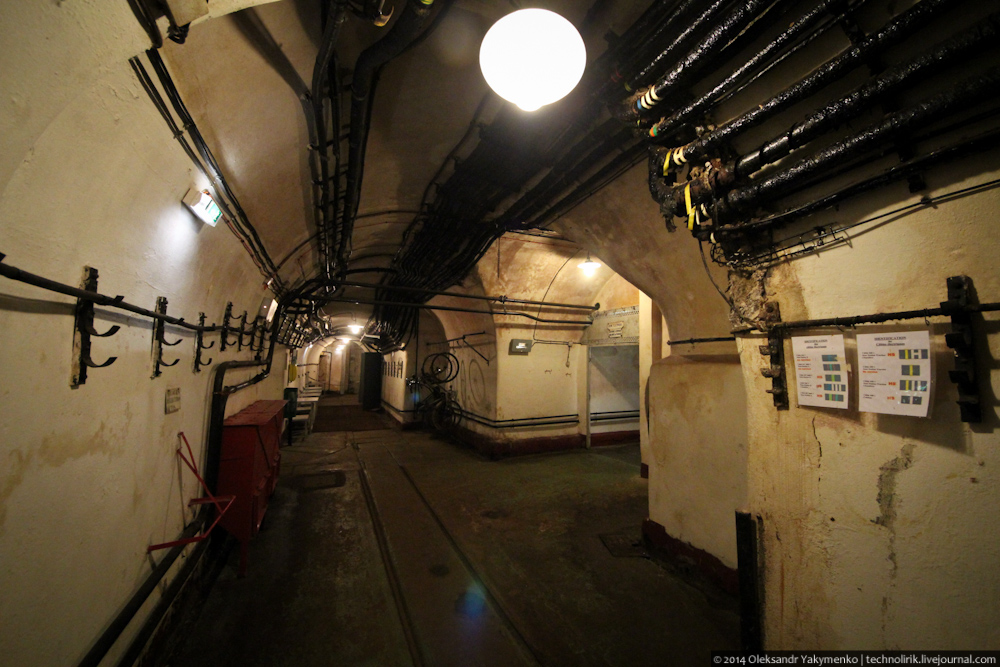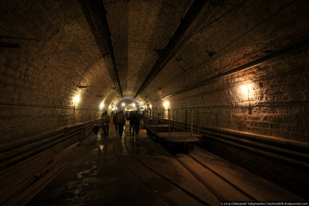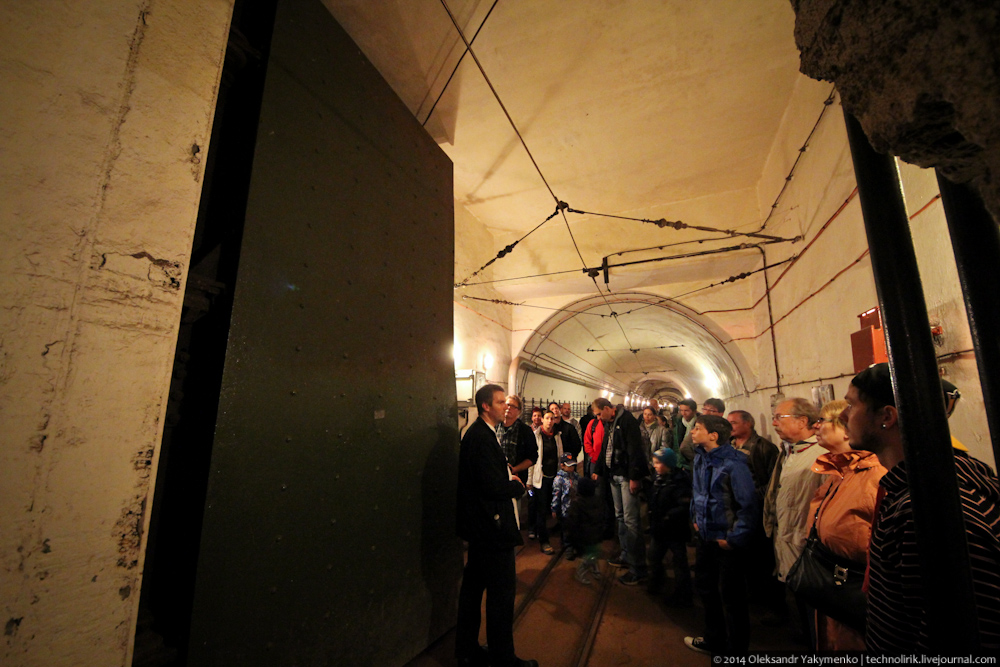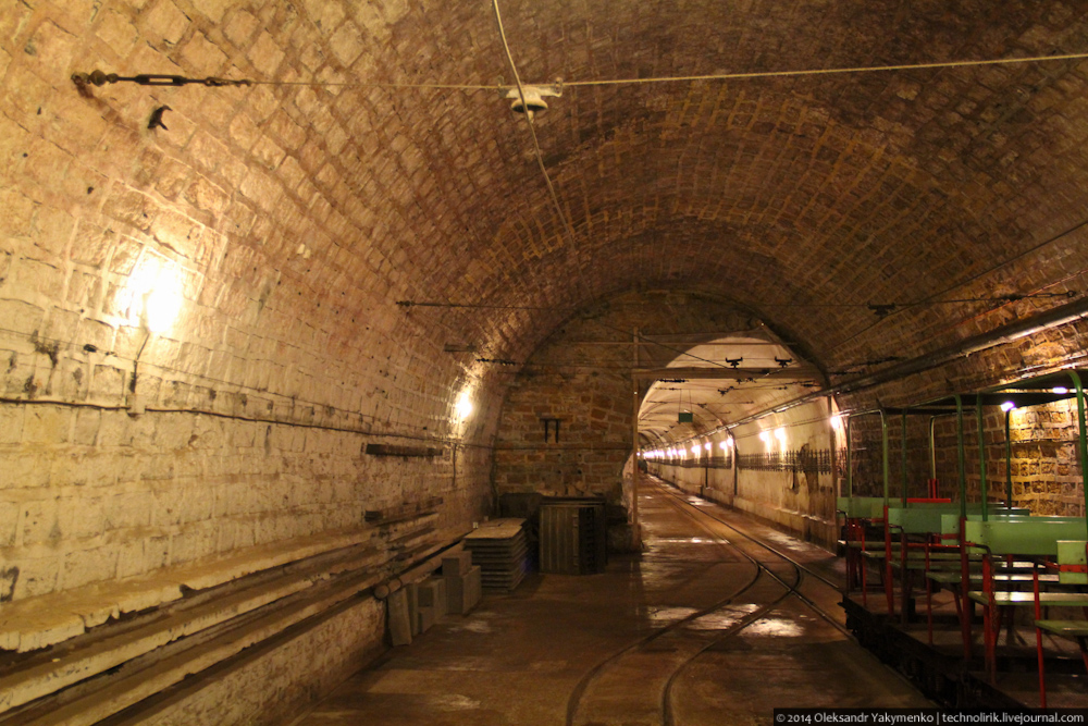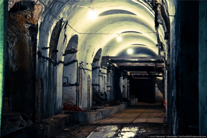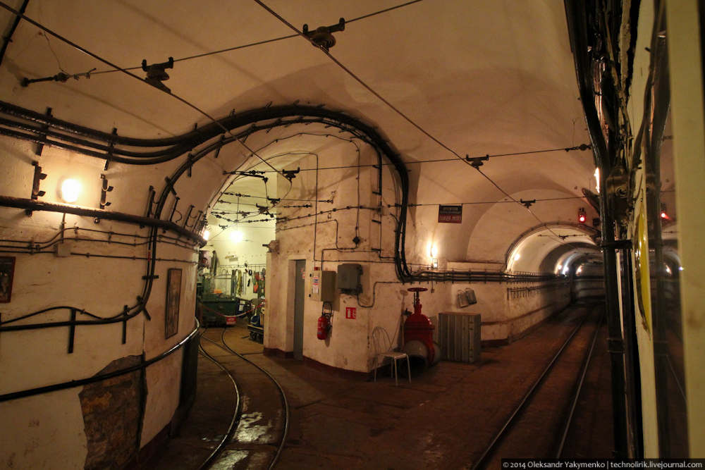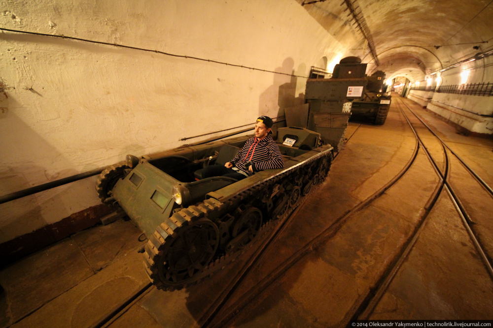 02. Внутрь входного портала для доставки амуниции ведет узкоколейка, по которой грузы доставлялись поездом с поверхности до ближайшего подземного вокзала, где они перегружались на вагонетки внутрифортовой железнодорожной системы и при помощи электрических локомотивов развозились к местам назначения.