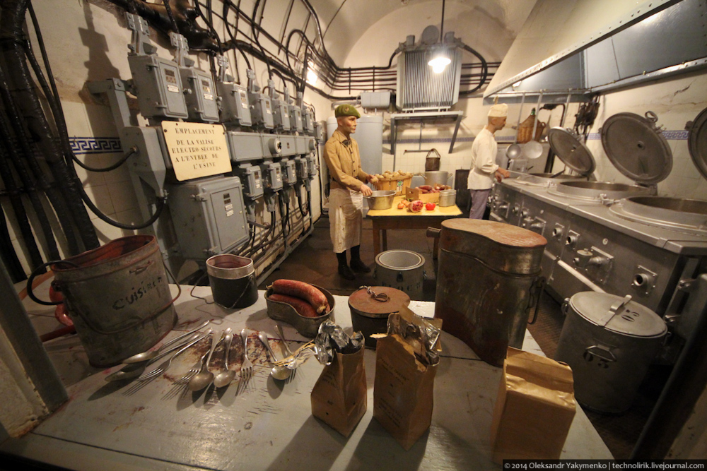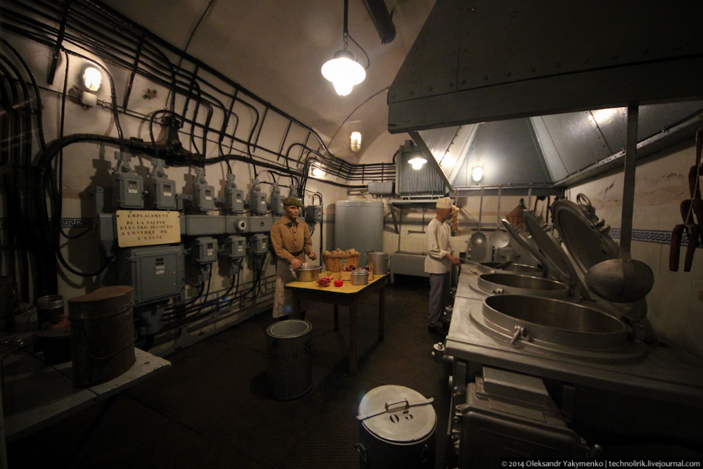 34. Кухни фортов линии Мажино являлись настоящим хайтеком того времени. Тут максимально использовалось электричество, различные машины, призванные облегчить работу на кухне, такие как как электрическая картофелечистка, кофеварка и прочее. Вся эта техника появилась на кухнях домашних хозяйств во Франции лишь в послевоенное время, а на линии Мажино эти нововведения использовались уже в 1930-х.