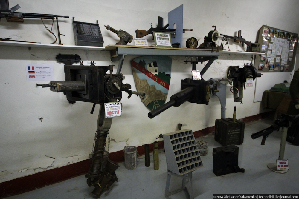 60. Казематный спаренный пулемет, применяемый практически во всех сооружениях линии Мажино от дотов до артиллерийских фортов и противотанковая 47-мм пушка, которая в случае необходимости заменяла спаренный пулемет в амбразуре. Я писал про эту систему в своих предыдущих обзорах объектов линии Мажино.